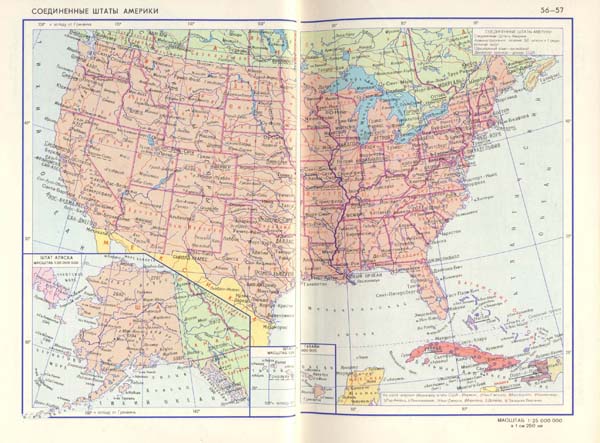 Последний советский атлас. Можно увидеть все нюансы того непростого времени. Как пример, можно указать на вариант написания города Таллинн (с двумя "н") или некую республику под названием "ССР Молдова" (на карте), которая в этом же Атласе встречается и под названием "Молдавская ССР" (в справочных данных). Германия и Йемен уже объединились, но существует ЧСФР (бывшая ЧССР).