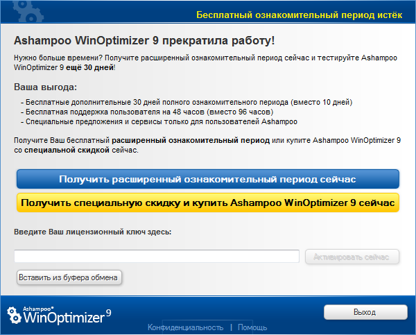 иногда при старте вылетает информация об окончании периода 30 дней