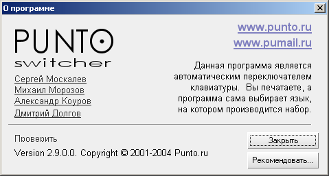 Скачать программу Punto Switcher 4.5.0 Build 583 (2,07 МБ):