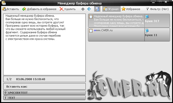 - Comfort Clipboard поддерживает все известные форматы данных. Ведет историю буфера обмена с возможностью повторной вставки любого выбранного фрагмента.