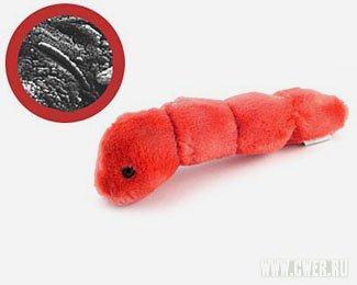 Многие и не догадываются, насколько милыми могут быть микробы, если их увеличить в миллион раз и одеть в плюш. А вот неизвестный дизайнер игрушек догадался. Насморк, некротический фасцит, ВИЧ, триппер, кишечная палочка и многие другие микробы были рассмотрены под микроскопом, скрупулезно обмеряны и превращены в чудеснейшие детские игрушки. Сейчас этих дивных и опасных уродцев можно найти и в России. Сомневаемся, однако, что ребёнок, познакомившись, скажем, плюшевым Гриппом, будет всерьёз следить за своим здоровьем.