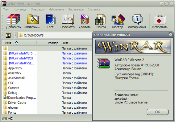 Скачать Portable WinRAR 3.80 Beta 2 Rus (2,1 МБ):