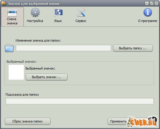 Утилита снабжена удобным и понятным интерфейсом, который призван помочь пользователю в освоении программного продукта, предназначенного для изменения внешнего вида папок Windows, присвоенного им по умолчанию.