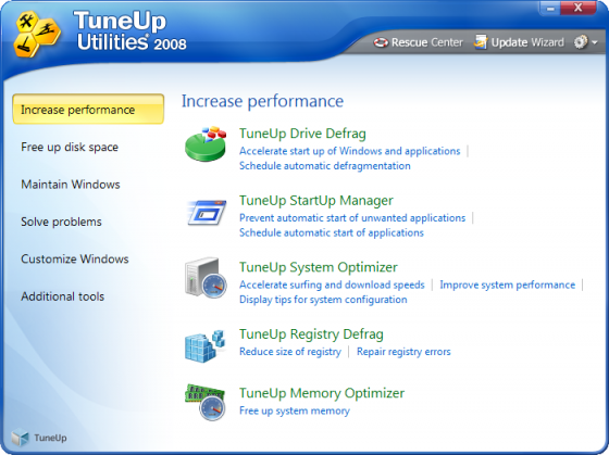 TuneUp Utilities предназначена для оптимизации и поддержания нормальной работы операционной системы Windows. Все утилиты этого пакета объединены в единую графическую оболочку. Для запуска той или иной утилиты нужно выбрать ее название в списке и кликнуть по ней мышкой. После этого открывается диалоговое окно, в котором и производятся все соответствующие действия. Возможности пакета TuneUp Utilities весьма обширны: настройка различных системных функций, оптимизация работы оперативной памяти, сбор подробной информации о системе (как программной, так и аппаратной ее частей), очистка битых ярлыков и мертвых ссылок, встроенный редактор реестра, удаление файлов с жесткого диска без возможности их восстановления. Работать с этой программой легко, поскольку не нужно выполнять сложных и непонятных действий.