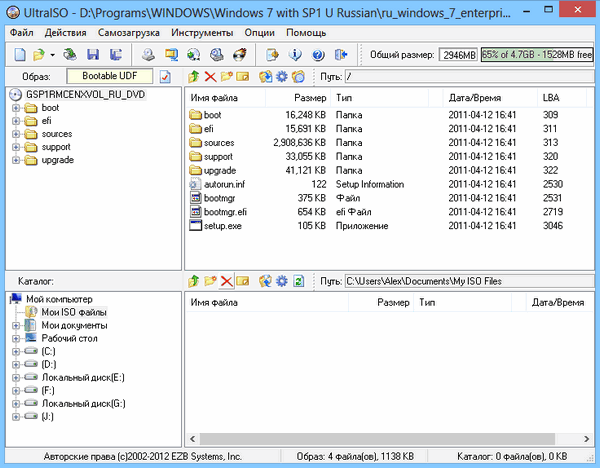 1. Запускаем программу UltraISO. В главном меню выбираем: "Файл" -> "Открыть" -> "Выбираем нужный образ" -> "Открыть". Получаем следующее окно: