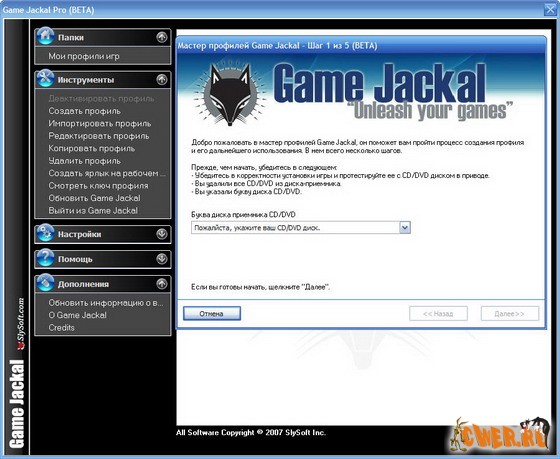 Часто, когда пользователю удается «заполучить» таки у знакомых компакт-диск с любимой игрой, возвращать его приходится в самый неподходящий момент, а своей копии приложения, разумеется, нет. Дилемму можно решить двумя способами – купить диск с компьютерной игрушкой или воспользоваться программой, которая создаст его профиль. Именно к классу данных утилит и относится Game Jackal.