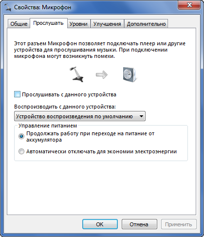 На семерке микрофон по умолчанию деактивирован. Нужно поставить галочку "Прослушивать с данного устройства" wink