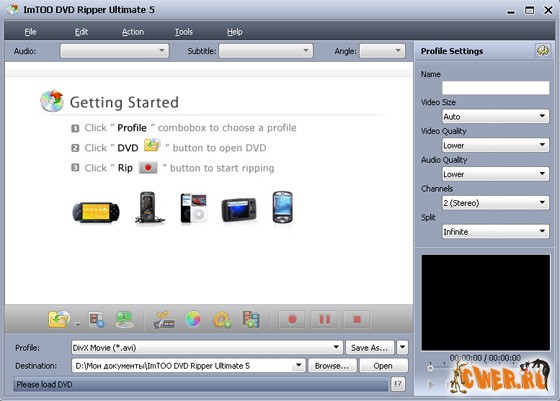 ImTOO DVD Ripper - конвертор DVD-дисков в форматы: VCD, SVCD, DivX, MPEG1, MPEG2, MPEG4, AVI и др. Программа имеет простой и понятный интерфейс, высокую скорость работы, а также большое количество дополнительных опций.