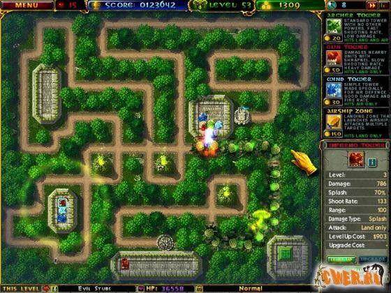 Основная задача игрока - выбрать для защиты лучшие по свойствам башни и их комбинации и заработать как можно больше денег. Игра содержит: - Более 20 видов врагов: демоны, орки, призраки, драконы, и т.д. - 15 типов башен, каждая имеет свои уникальные характеристики и свойства, такие как огонь, отравление, замедление, порча, расширение ударной волны и другие.