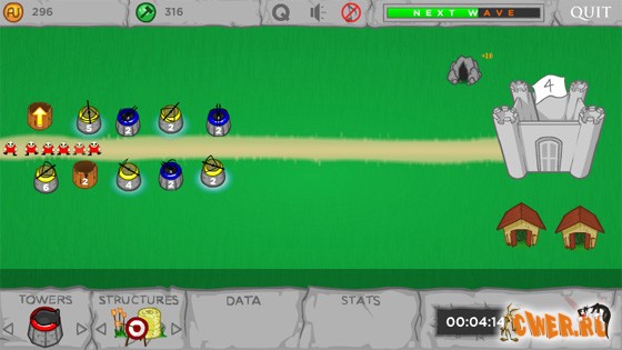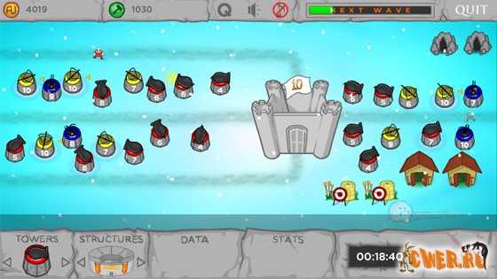 Очередная флешка, посвящённая обороне замка. Ваша задача не позволить противнику подобраться к замку и разрушить его. В процессе игры зарабатываем деньги, устанавливаем новые боевые башни и вспомогательные сооружения. Задача усложняется тем, что с каждым последующим уровнем количество дорог, ведущих к замку, меняется (и далеко не в меньшую сторону :-)) и враг может двигаться по нескольким из них одновременно. В игре присутствуют такие полезные функции, как возможность сохранения и повторного прохождения уровней. Одним словом, не соскучитесь!