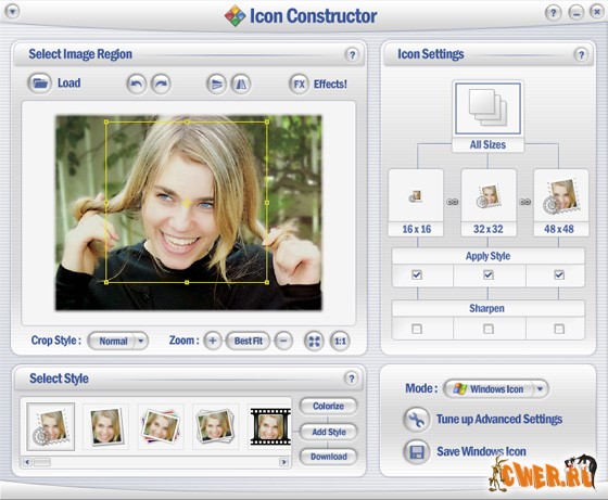 Программа для создания иконок. Достаточно выбрать нужную картинку или кадр клипа, отметить на нем область захвата и выбрать шаблон для иконок. Готовые иконки можно сохранить в формате ico (в виде комплекта иконок стандартных размеров) или png, gif, jpg. Также Icon Constructor может создавать ярлыки с персональными иконками для запуска ICQ, отправки E-mail или просто для папок.