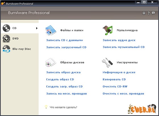Простая и в тоже время мощная программа для записи и копирования дисков формата CD, DVD и Blu-Ray. Программа позволяет выполнять все основные задачи по записи: работа с носителями CD/DVD, Blu-Ray; запись Audio-CD и DVD-Video; копирование и прожиг образов; клонирование дисков; поддержка мультисессии и многое другое. Имеется многоязычный интерфейс, включая русский и поддержка Windows Vista.