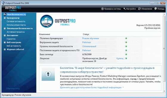 Outpost Firewall Pro 2009 build 6.5.2358.316.0607