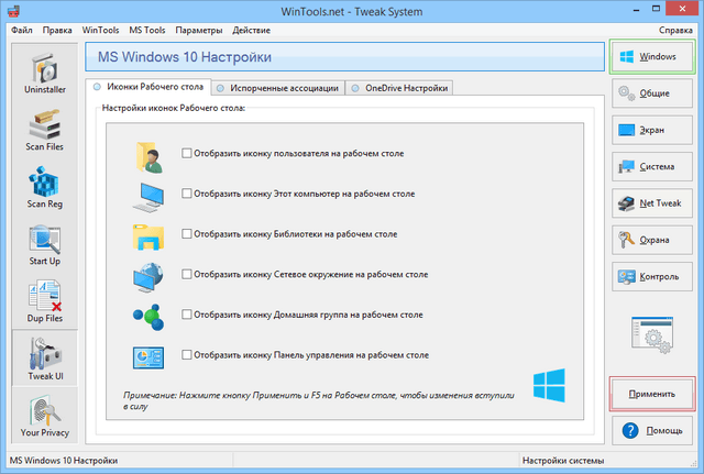 Набор дополнительных настроек и возможностей, влияющих на безопасность, производительность и удобство использования операционной системы и не входящих в стандартную поставку MS Windows. Настройки подразделены на шесть групп, каждые из которых разбиты на подгруппы в целях упрощения навигации: