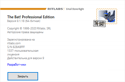 По версии 9.1.18... На hitfile.net загрузки перепутаны местами. Вместо The Bat! Professional скачивается The Bat! Voyager 9.1.18.1 и наоборот. Остальное не проверял...