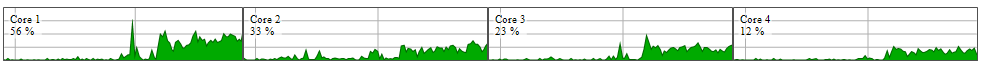 1. График использования ядер процессора до и после начала воспроизведения видео.