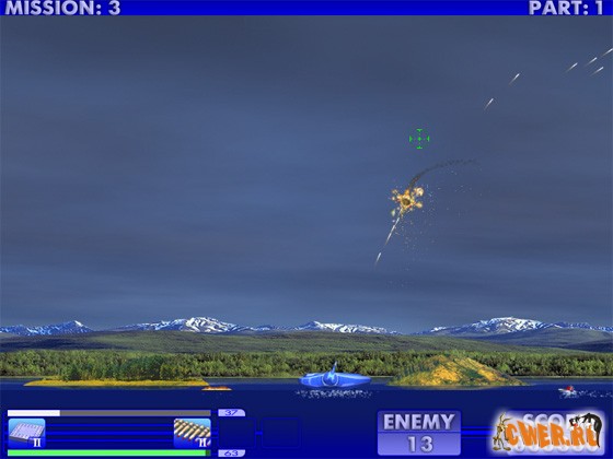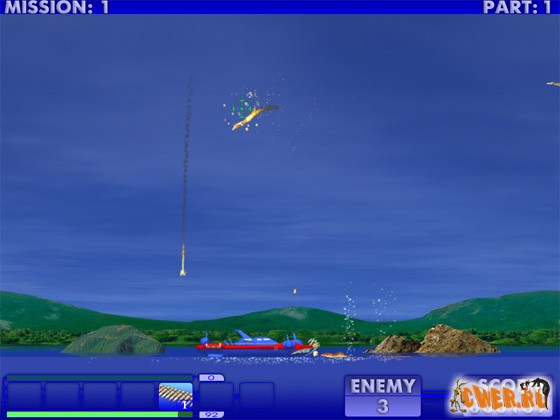 Просто ураганная стрелялка! Четыре варианта игры (и степеней сложности), большое количество уровней и разнообразные бонусы. Ваша задача уничтожать авиацию противника, уворачиваясь от ракет, бомб и напалма. Опасайтесь также плавучих мин - ведь сюжет игры происходит на воде. Собирая бонусы, Вы прибавляете себе здоровья, модернизируете оружие и получаете новые его виды.