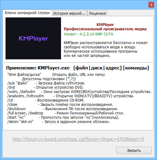 Вариант2 KMPlayer при запуске в версии 3.9 и ниже: