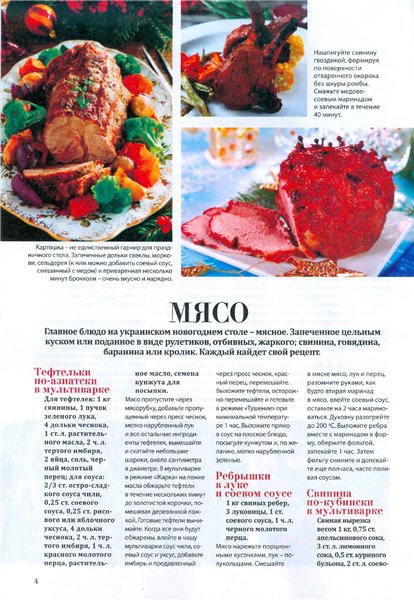Отличный кулинарный журнал, в котором можно найти блюда на любые случаи жизни. Чтобы узнать интересные и оригинальные способы приготовления мяса, рыбы, овощей и многих других продуктов, загляните в этот выпуск. Пусть новый год будет мирным и радостным, а новогодний стол - богатым!
