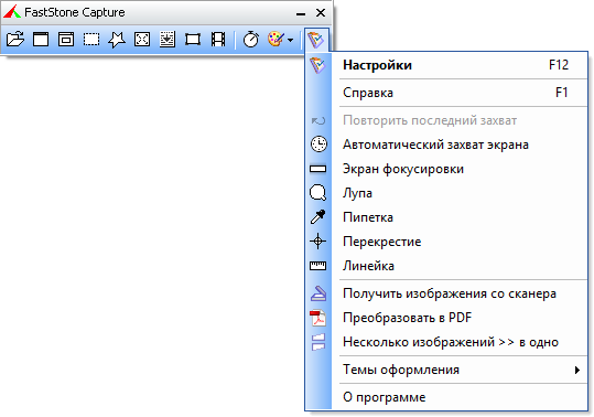 FastStone Capture – простая, но функциональная утилита для захвата снимков с рабочего стола Windows. Есть возможность захватывать как отдельные элементы (окна, части рабочего пространства), так и полный экран (поддерживается прокрутка страниц). Встроена панель для редактирования изображений, экранная лупа, пипетка и линейка, что делает программу ещё более удобной.