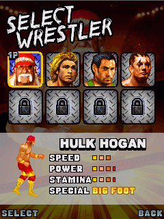 Игра предлагает трехмерное изображение с «эксцентричными борцами» и «смешными диалогами», так же как и движения, включающие в себя Strong Clothesline, Spinbuster, Pedigree и Doublehand Chocke Lift. Размеры экранов: 128х128, 128х160, 176х220, 240х320.