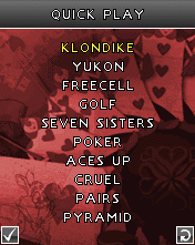 Игра для мобильных телефонов. Этот сборник пасьянсов включает в себя целых 10 видов пасьянса: Косынка (Клондайк), Юкон, Свободная ячейка, Гольф, Семь сестер, Покерный, Тузы сверху, Суровый, Пары, Пирамида! Размеры экранов: 128х128, 128х160, 176х208, 176х220, 240х320.