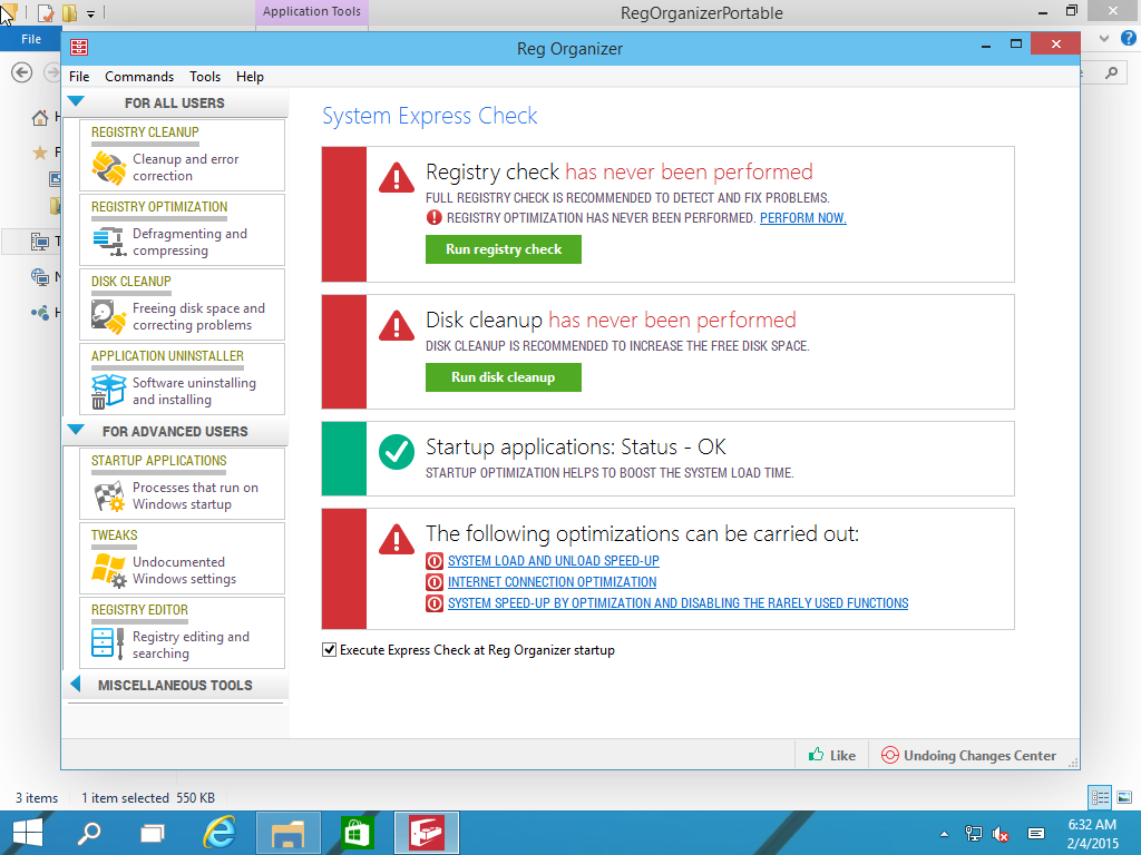 3. Ну и самое большое разочарование это дефрагментатор реестра. После обслуживания пишет, что дефрагментация реестра не нужна. Потом пробывал сделать то же самое с Vit Registry Fix и AusLogic BoostSpeed. Обе программы показали одинаковый результат - можна освободить 1,7 мб. А Reg Organizer упорно это не видит. Дело не в мегабайтах, но всё-же...