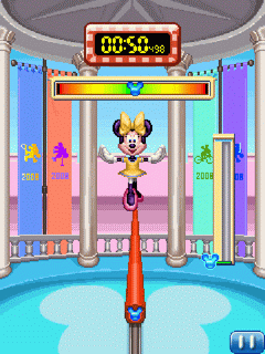 Игра для мобильных телефонов. Помоги Гуфи, Микки, Минни и Дональду победить и получить золотые медали в спортивных соревнованиях мирового класса. Неуклюжему Гуфи предстоит преодолеть 400- метровую трассу с препятствиями и не упасть. Минни покажет свое умение держать равновесие на бревне и восхитительную осанку. Микки продемонстрирует свое мастерство пловца в соревнованиях по плаванию, а Дональд покажет высший класс в прыжках в воду! Удобное управление делает эту игру легкой и увлекательной, но, чтобы побить мировые рекорды, вам придется попотеть. Размеры экранов: 128х128, 128х160, 176х208, 176х220, 240х320.