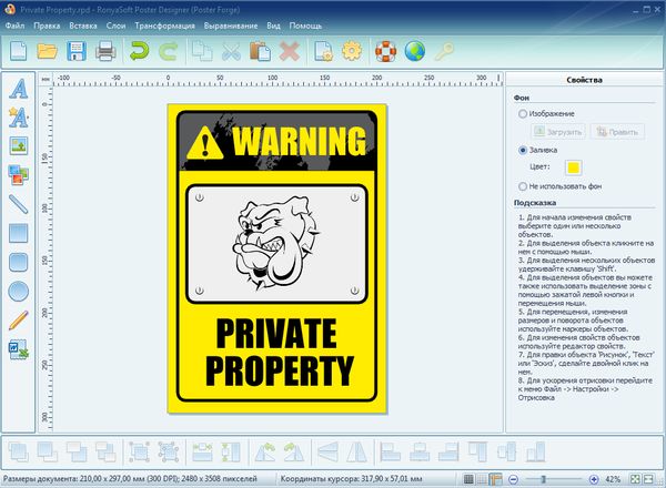 RonyaSoft Poster Designer — это легкая в использовании программа для дизайна и печати привлекательных индивидуальных постеров и баннеров. Коллекция готовых шаблонов плакатов и интуитивный пользовательский интерфейс позволяют создавать собственные постеры и баннеры практически за несколько кликов. Любая деталь в шаблоне постера может быть изменена соответственно вашим требованиям, например: рисунок, текст, цвет, размер, стиль и т.п.