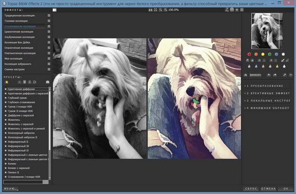 Некоторые из основных функций в Topaz B&W Effects: