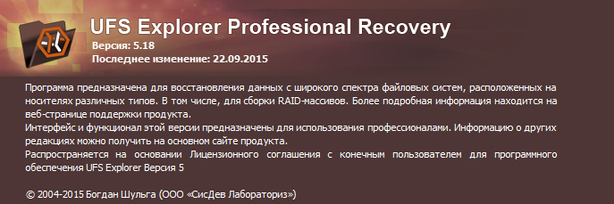 Скачать программу UFS Explorer Professional Recovery 5.18 Final (17,65 МБ):