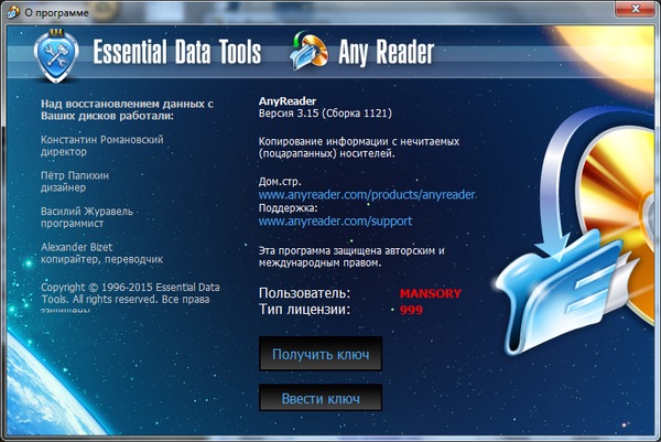 Программа AnyReader предназначена для копирования данных с любых плохочитаемых или поврежденных носителей. Также она легко и быстро прочитает данные с CD/DVD дисков, сетей LAN и Wireless LAN, флеш карт памяти, ZIP дисков и других носителей. Уникальность программы заключается в возможности продолжать чтение/копирование информации после возникших ошибок чтения или потери соединения в различных видах сетей (особенно актуально для сетей Wi-Fi).