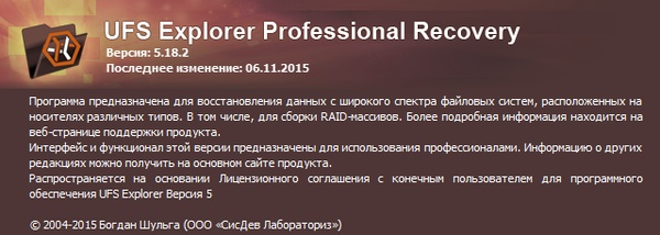 Скачать программу UFS Explorer Professional Recovery 5.18.2 (17,76 МБ):