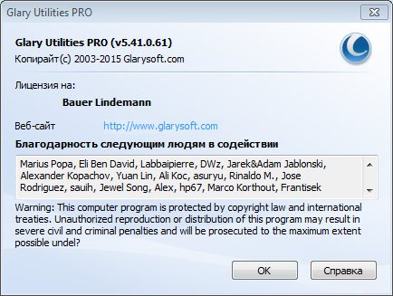 Скачать программу Glary Utilities Pro 5.41.0.61 (14,55 МБ):