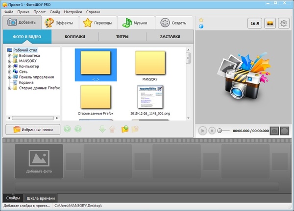 ФотоШОУ Pro - это удобная программа для создания музыкальных слайд-шоу с красивыми эффектами переходов, которую можно бесплатно скачать на cwer.ws. Позволяет добавлять неограниченное число фотографий, вставлять подписи и титры, использовать темы оформления и многое другое. Подготовленные слайд-шоу можно сохранить в виде EXE-файла, скринсейвера или видео, в том числе full HD.