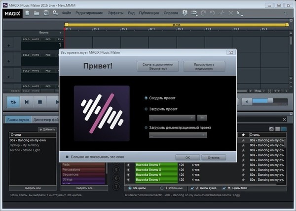 Скачать программу MAGIX Music Maker 2016 Live 22.0.3.63 + русификатор (692,55 МБ):