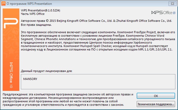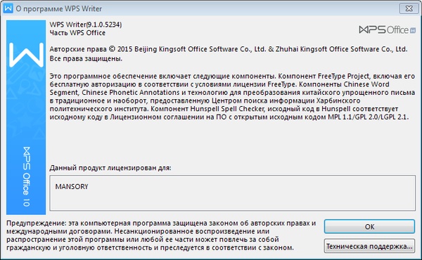 Скачать программу WPS Office 2015 Premium 9.1.0.5234 (68,61 МБ):