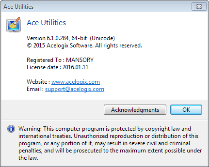 Скачать программу Ace Utilities 6.1.0 Build 284 Final (9,5 МБ):