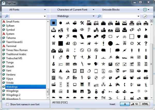 PopChar - утилита, представляющая собой всплывающее окно, которое может располагаться поверх всех остальных окон и выводить таблицу различных символов, которые пользователь может вставить в текст любого документа. Кроме стандартных букв и чисел, клавиатура имеет множество других знаков, применяющиеся повсеместно, но которые не всегда можно легко вставить в текст. Для использования многих из них, требуется запомнить сложные комбинации клавиш, о которых вы можете просто не знать. Вот почему программа PopChar так полезна. Она позволяет вам вставлять спецсимволы в свои тексты на ходу, не теряя времени на подбор различных комбинаций клавиш или поиск их в интернете. Просто с помощью мыши выберите необходимый символ, и он может быть скопирован куда угодно - будь то текстовый редактор или email клиент. Программа может быть запущена определенной комбинацией клавиш и закрывается немедленно, сразу после вставки символа.