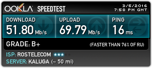 Для положенных 70 Мбит/с по тарифу, я считаю, вполне хороший результат, не то что было 30-40 Мбит/c.