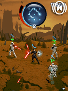 Игра для мобильных телефонов. Призовите свою Силу и продолжите свою борьбу в эпическом масштабе и кинематографическом наборе приключений, действия которых происходит во время Звездных Войн во Вселенной. Размеры экранов: 176х208, 240х320.