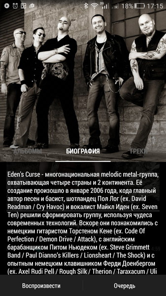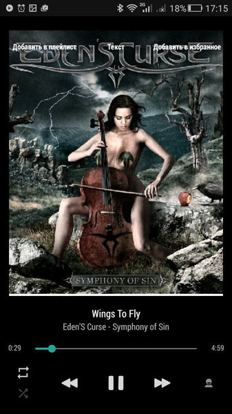 При прослушивании можно читать сведения о группе, редактировать теги...