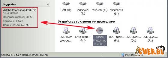 Таким образом, скачав образ диска, прожигаем его на болванку и имеем в своем арсенале диск с Photoshop CS3 Extended, которым можно поделиться с друзьями.