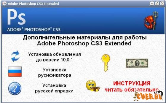 1. Обновлен оригинальный диск Adobe Photoshop CS3, а именно, Adobe Reader 8 заменен на Adobe Reader 9