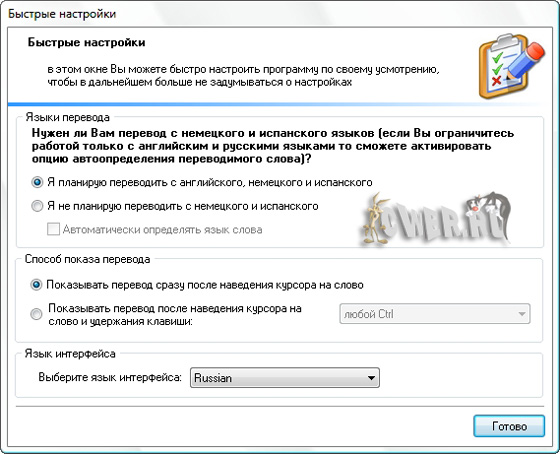Вы ищете электронный словарь, который поможет Вам переводить с английского, немецкого и испанского на русский? Вы его нашли! Больше того, Вы нашли ненавязчивого помощника, с помощью которого сможете читать новости и почту, просматривать сайты на иностранном языке, работать с нерусифицированными справками и программами.