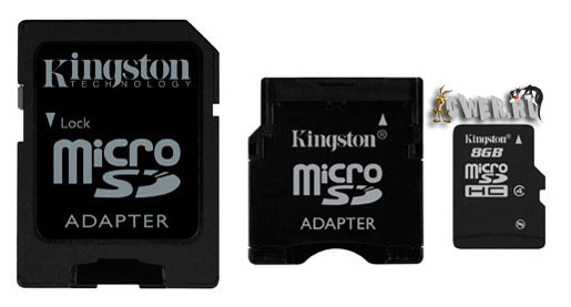 В свою очередь комплект Kingston 8GB Multi-Kit состоит из 8-гигабайтной microSDHC-карты, дополненной двумя адаптерами, благодаря которым реализуется совместимость данного накопителя со слотами стандартов miniSDHC и SDHC.