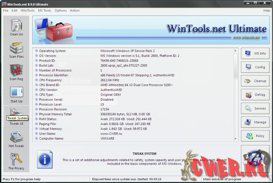WinTools.net Ultimate – набор инструментов для оптимизации операционной системы Windows. В состав программы входят компоненты для полного удаления нежелательных программ и «мертвых» ссылок реестра, а также для контроля процессов, настройки системы, интернет-соединений и интерфейса. Кроме того, имеются утилиты для надежного хранения конфиденциальной информации. Работает на платформах Windows 2000, 2003, XP и Vista.