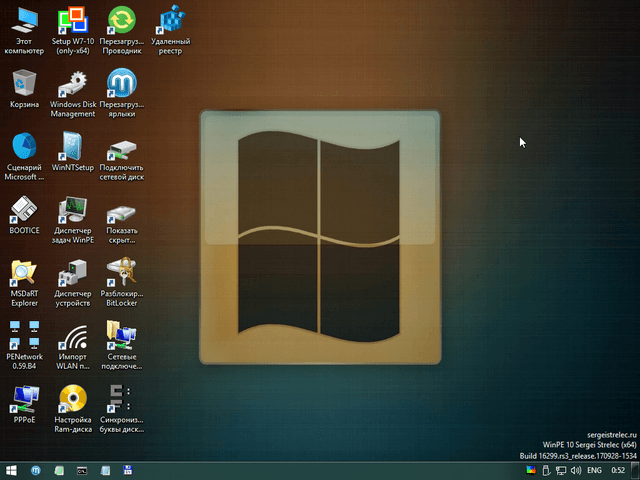 Загрузочный диск на базе Windows 10 для обслуживания компьютеров, работы с жесткими дисками и разделами, резервного копирования и восстановления дисков и разделов, диагностики компьютера, восстановления данных, антивирусной профилактики и установки ОС Windows.