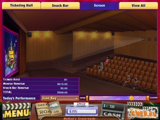 Нанимайте работников, выбирайте фильмы для показа в своих кинотеатрах, улучшайте закусочные, устанавливайте цены на билеты, заработайте деньги, чтобы покупать новинки синематографа! Все это Вы найдете во второй части игры Cinema Tycoon 2: Movie Mania.