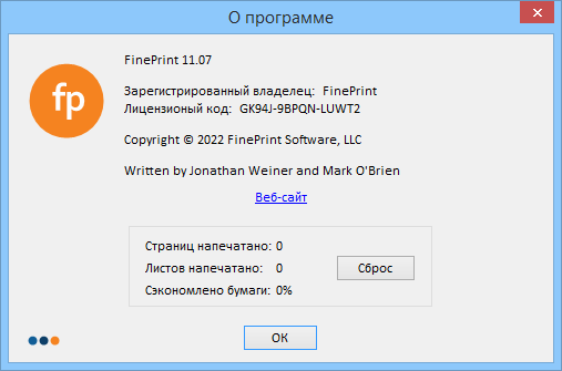 - Отображение количества сэкономленной при помощи FinePrint бумаги